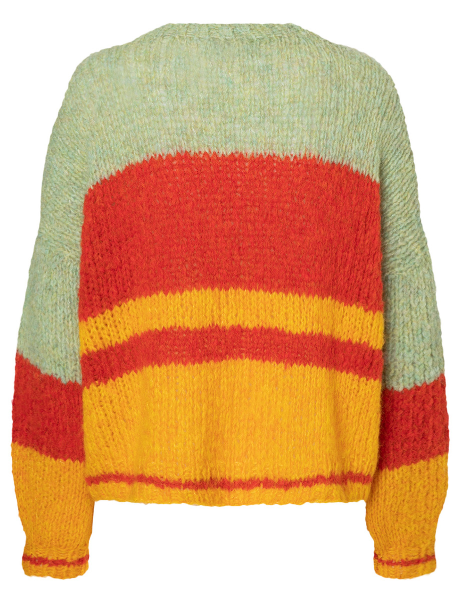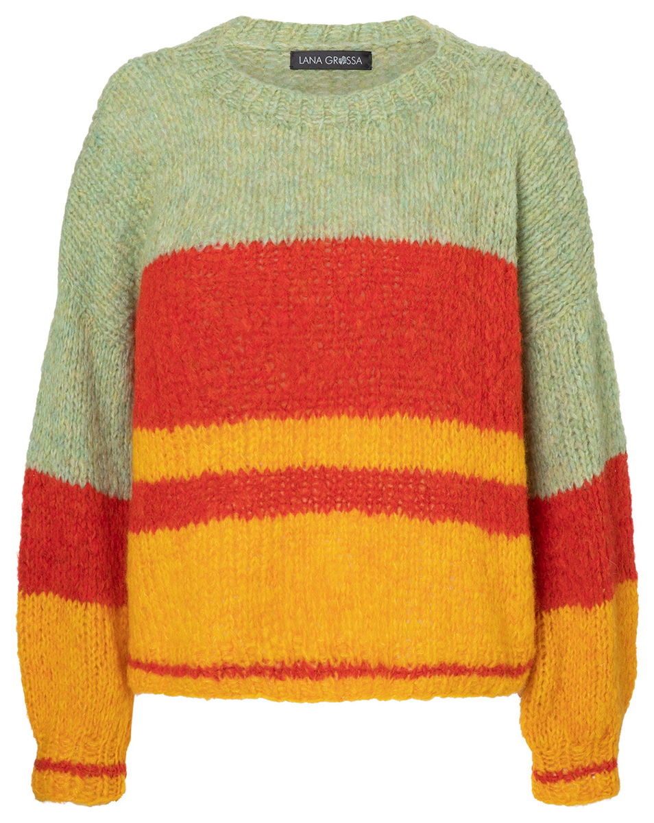Krasse Farbkontraste – mehr braucht es nicht, um einen einfachen, glatt rechts gestrickten Blockstreifenpulli in einen Eyecatcher zu verwandeln.