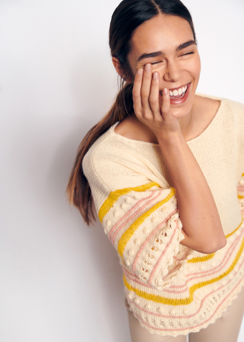 Kurze Ärmel und wird oben herum glatt rechts gestrickt, das spart Zeit – und funktioniert auch an heißen Tagen.