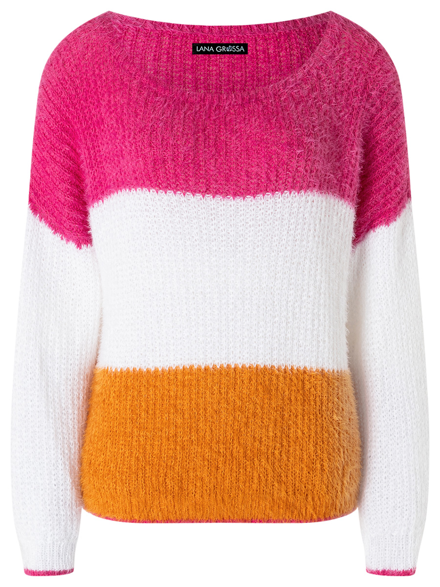 Der Clou beim lässigen Halbpatent-Pulli? Blockstreifen in Trendfarben. Und eine neue Mohair-Alternative, die garantiert nicht kratzt.