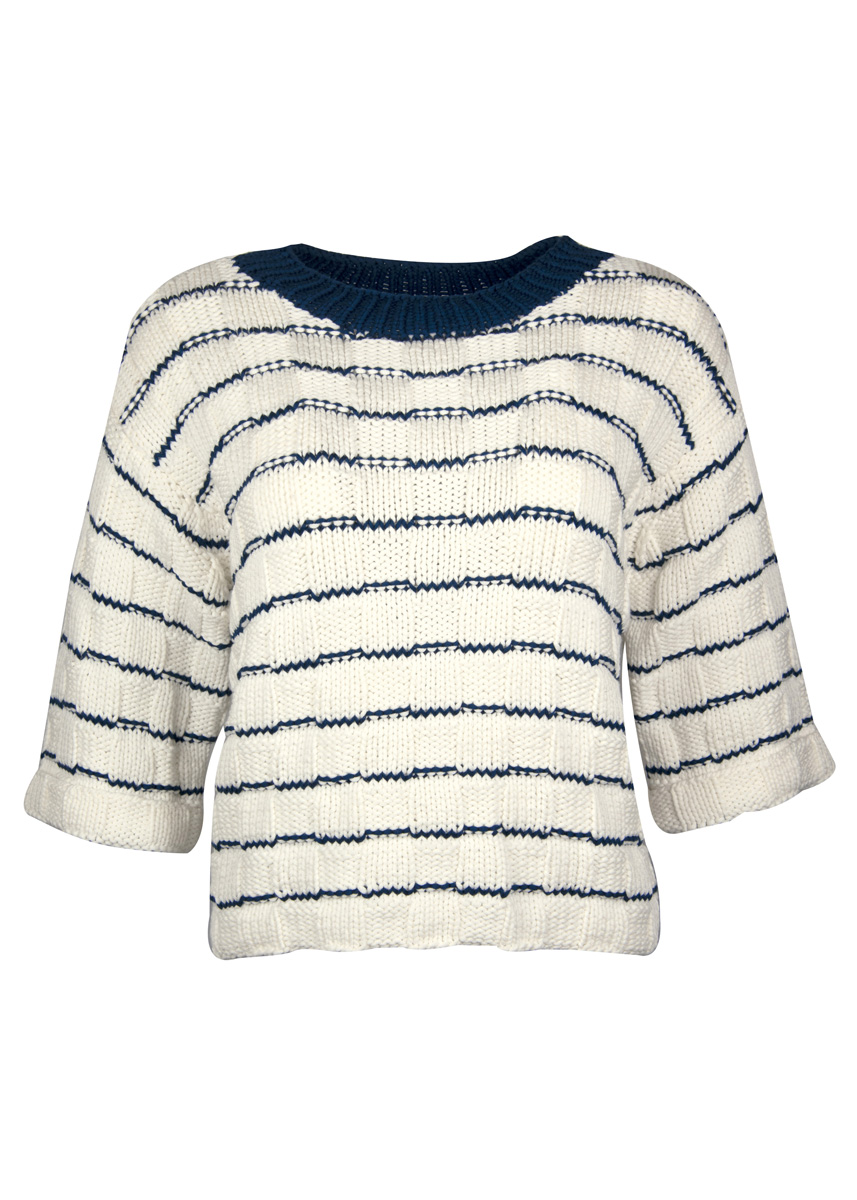 Auch Klassiker brauchen hin und wieder ein modisches Update. Hier sind es Marine- Ringel, die durch den Mix mit Würfelmuster fröhlich aus der Reihe tanzen.