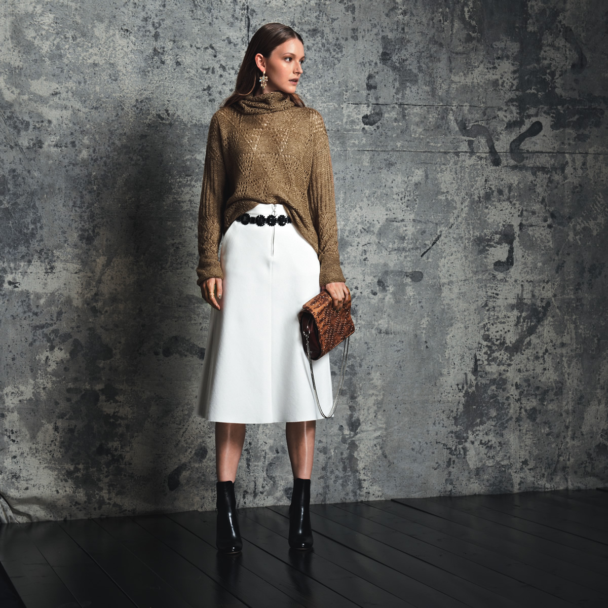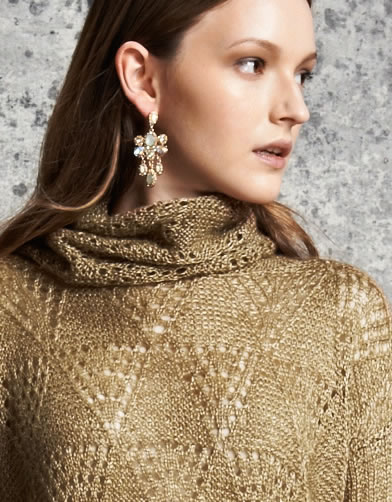 Lana Grossa-Qualität „Lace Lux“ (67 % Viskose, 33 % Schurwolle (Merino extrafine), Lauflänge ca. 310 m/50 g): ca. 250 (300) g Braun meliert (Fb. 41); Stricknadeln Nr. 4, 1 Rundstricknadel Nr. 4, 60 cm lang.