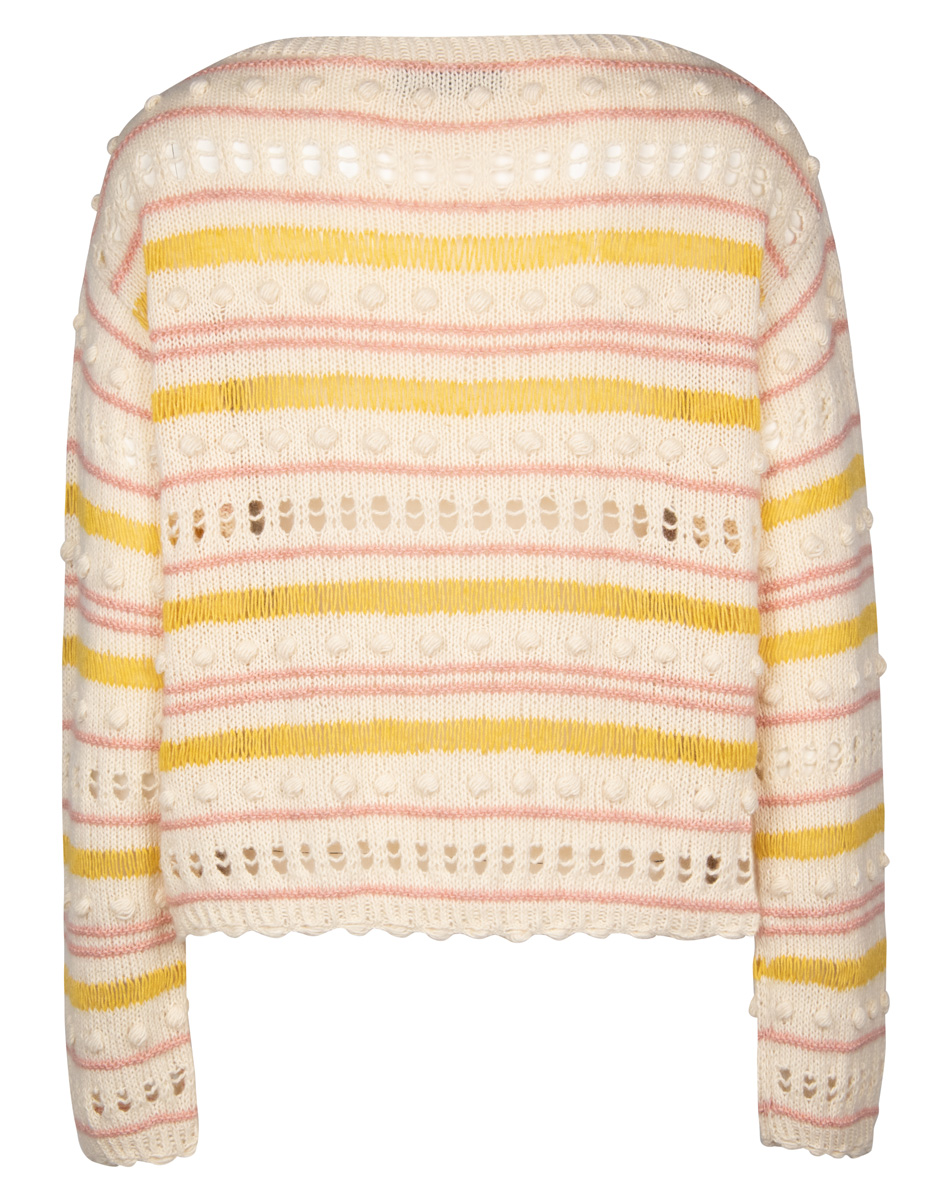Lochmuster, Fallmaschen und knuffige Noppen sorgen hier für jede Menge Folklore. Die sahnigen Farben erinnern an Softeis – und passen auch super zu verwaschenen Jeans.