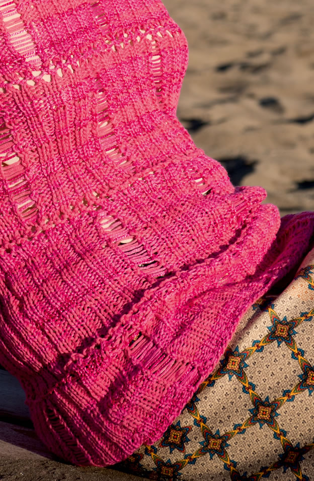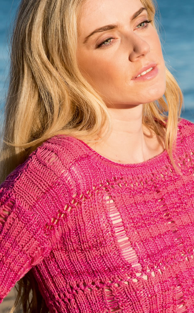 Lana Grossa-Qualität „Allegro Unito” (58 % Viskose, 42 % Baumwolle, LL = ca. 115 m/50 g): ca. 450 (500) g Pink (Fb. 109); Stricknadeln Nr. 4,5, je 1 Rundstricknadel Nr. 4 und 4,5, 60 cm lang.