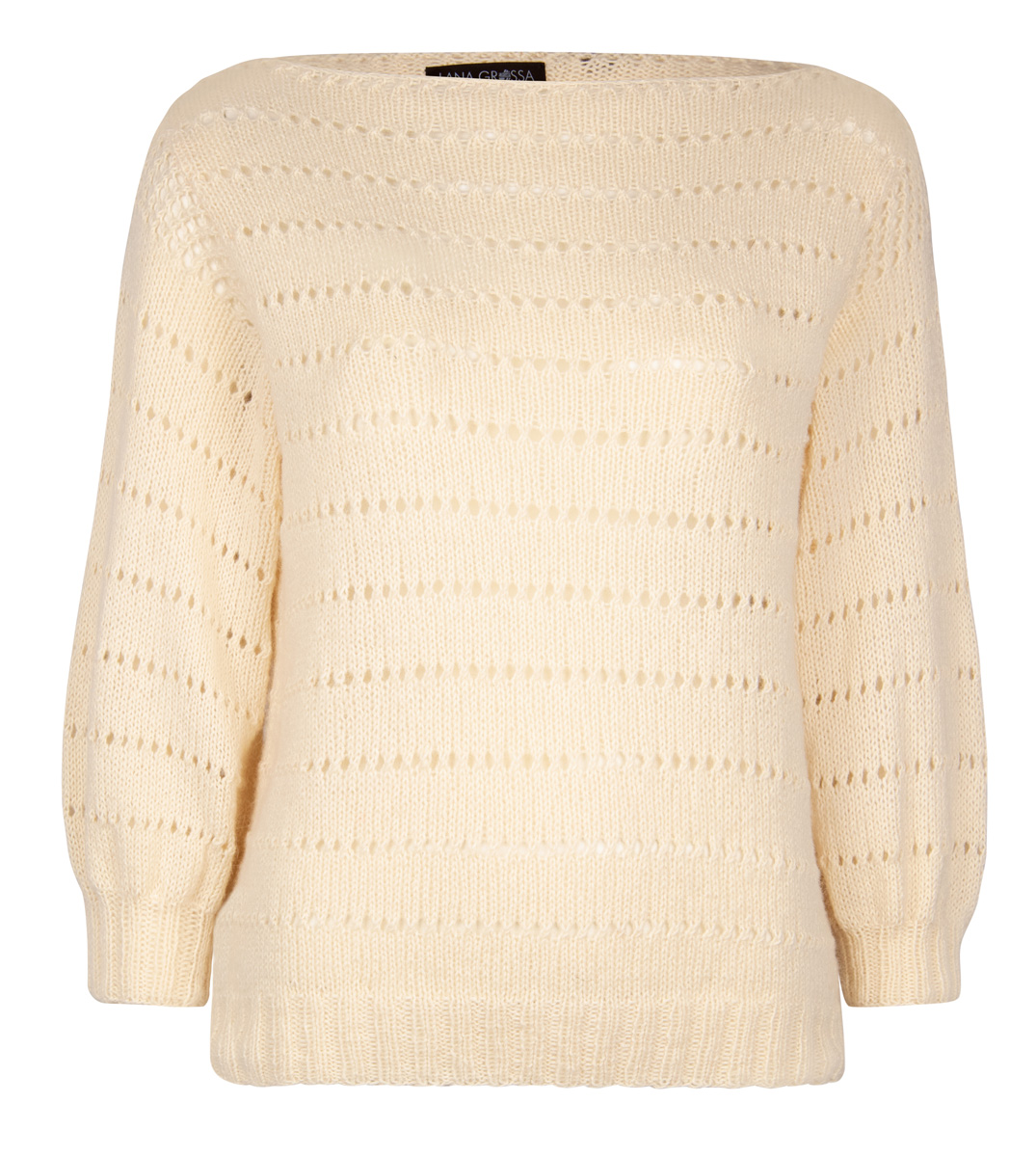 Verspielte Lochmuster, klare Linien (U-Boot-Ausschnitt und gerade eingesetzte Ärmel): Ein tolles Teil für moderne Romantikerinnen.