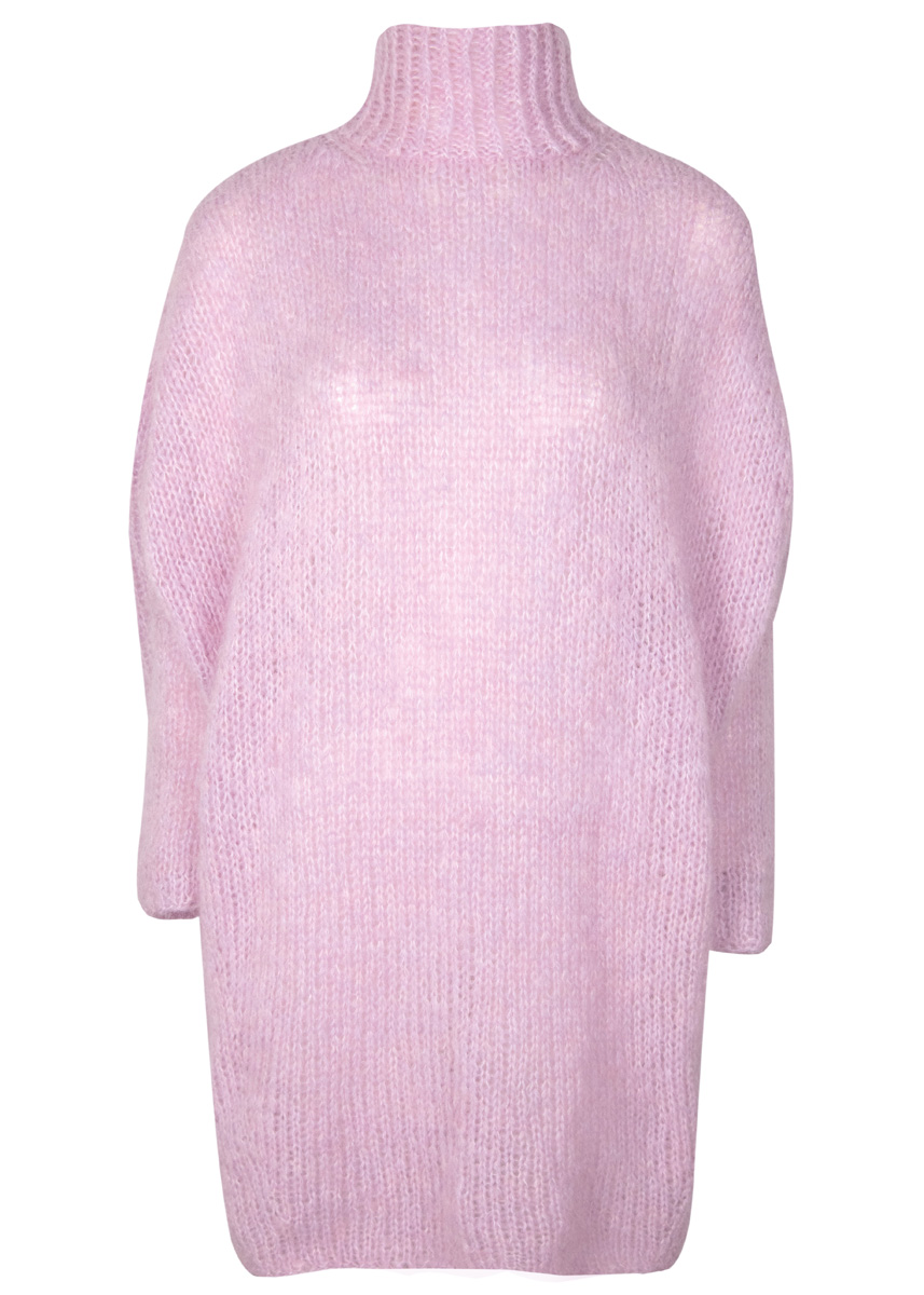 Lana Grossa „Brigitte No. 3“ (40% Mohair, 37% Schurwolle Merino, 23% Polyamid; Lauflänge ca. 100 m/25 g), 400 (450) g in Fliederrosa (Fb 7); Stricknadeln Nr. 5 und 8; Rundstricknadel Nr. 5 in 40 cm Länge.