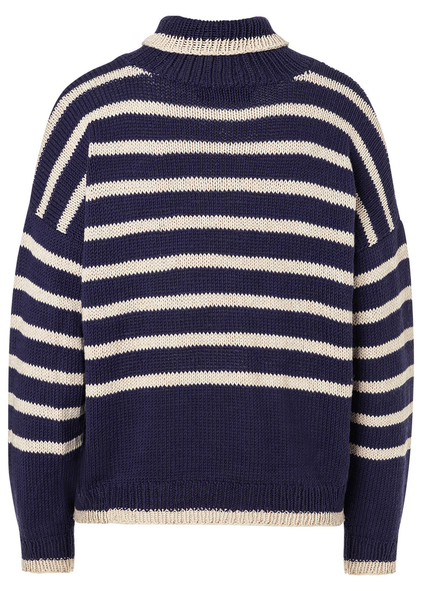 Klassische Marineringel, eine simple Machart (glatt rechts gestrickt) und Baumwolle mit 20 Prozent herrlich weichem Alpaka (Baby): Ein unkomplizierter Sweater für kühlere Tage.