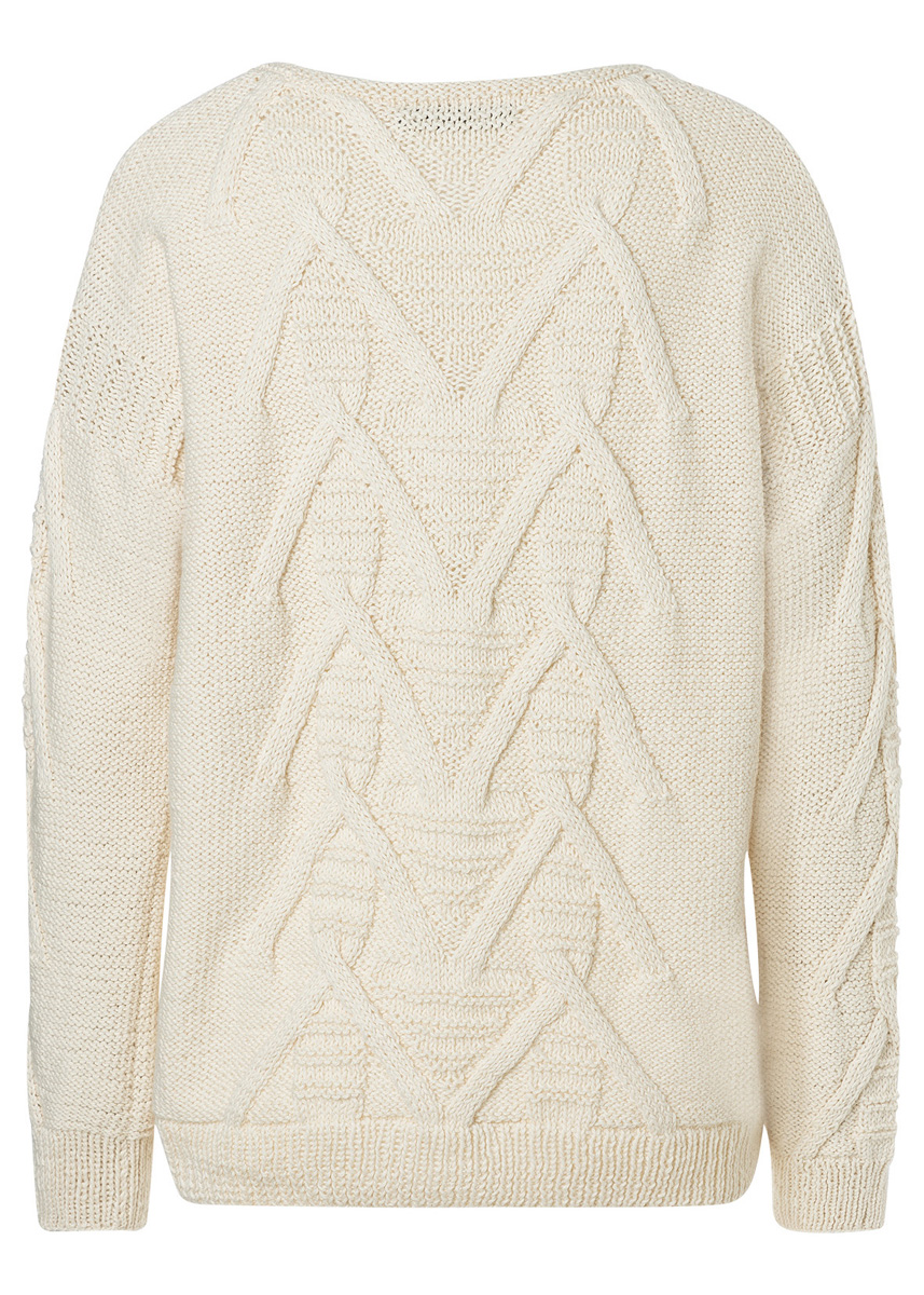 Lana Grossa Cara (57% Alpaka (Baby), 33% Baumwolle, 10% Schurwolle (Merino), Lauflänge 120 m/50 g), 550 (600 – 650) g Blassgelb (Fb 1); Stricknadeln Nr. 3 und 3,5, 1 Rundstricknadel Nr. 3, 40 cm lang.