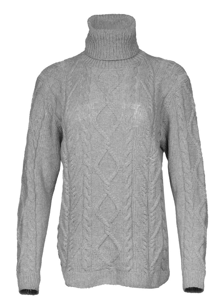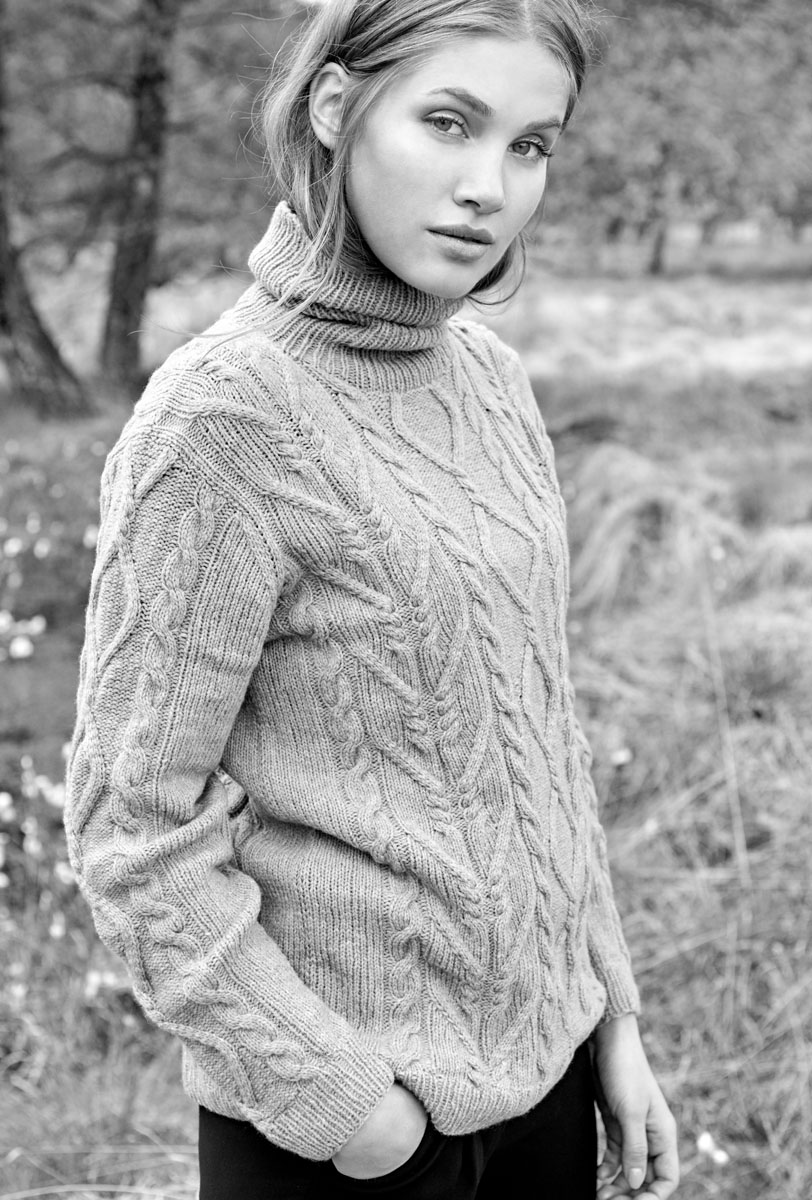 Lana Grossa Cashmere 16 Fine (80% Schurwolle, 10% Kaschmir, 10% Polyamid, Laufl änge 320 m/50 g), 350 (400 – 450) g Hellblau (Fb 28); Stricknadeln Nr. 5, 1 Rundstricknadel Nr. 4,5, 40 cm lang, 1 Zopfnadel