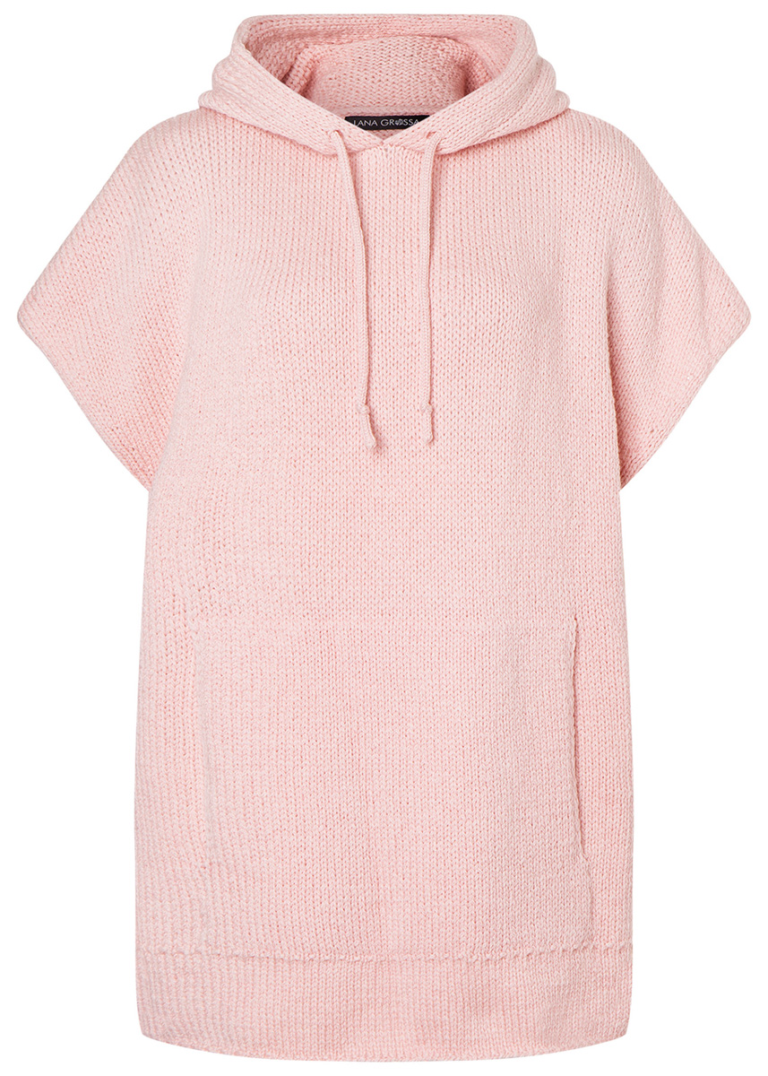 Lana Grossa Cool Merino (90% Schurwolle (Merino), 10% Polyamid, Lauflänge 150 m/50 g), 500 (550 – 600) g Rosa (Fb 10); Stricknadeln Nr. 5 und 6, 1 Rundstricknadel Nr. 6, 40 cm lang, 2 Maschenmarkierer, 1 Sicherheitsnadel und 1 Strickmühle von PRYM.