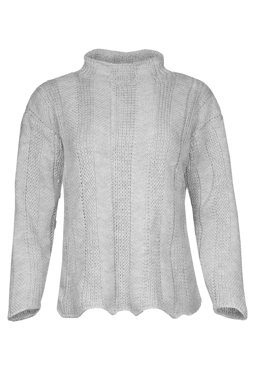 Lana Grossa Cool Wool Big (100% Schurwolle Laufl änge 120 m/50 g), 550 (600 – 650) g Hellgrau meliert (Fb 616); Stricknadeln Nr. 4,5 und 1 Rundstricknadel Nr. 4,5, 40 cm lang