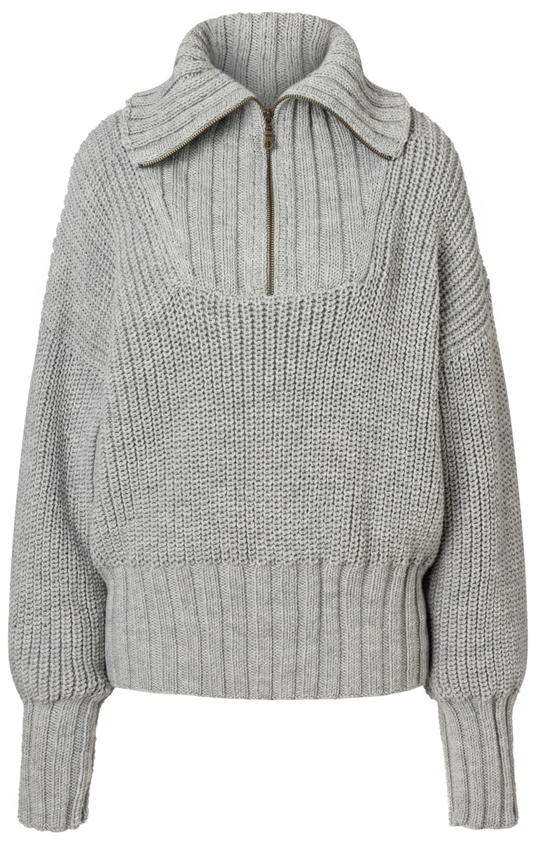Lana Grossa Cool Wool Big Mélange (100% Schurwolle (Merino extrafine), Lauflänge 120 m/50 g), 900 (950 – 1000) g Hellgrau meliert (Fb 616); Stricknadeln Nr. 4, 4,5 und 5, 1 Reißverschluss von YKK, Metall, Hellgrau, 40 cm lang.