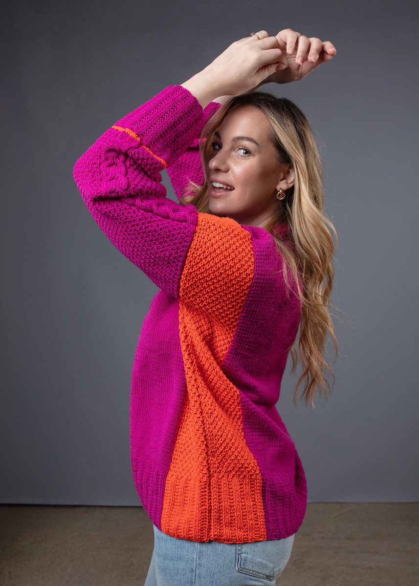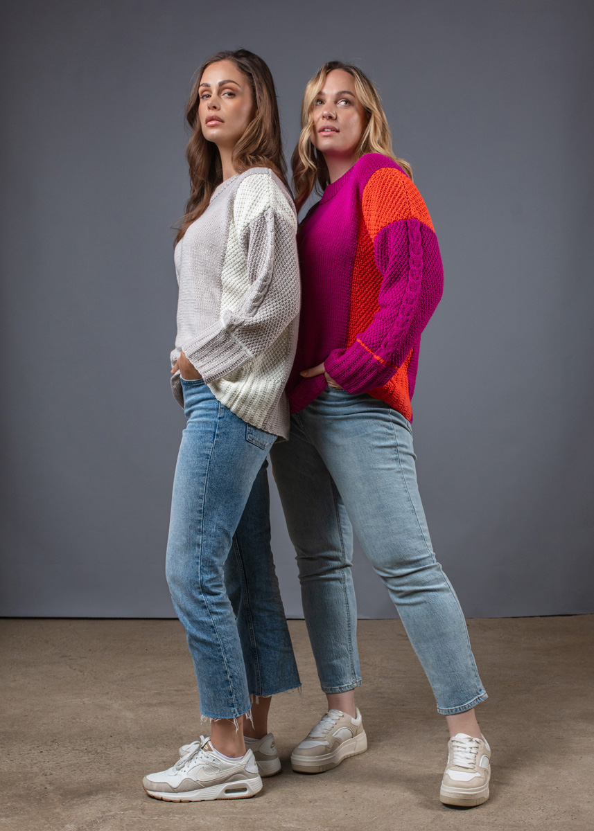 Zusammen stark: lässiger Oversize-Pullover und Loop. Die Kombination aus Perlmuster, Zopfmuster und Farbwechsel sorgt für ein abwechslungsreiches Strickvergnügen. Ob schlicht oder knallig, die Blicke sind gesichert!