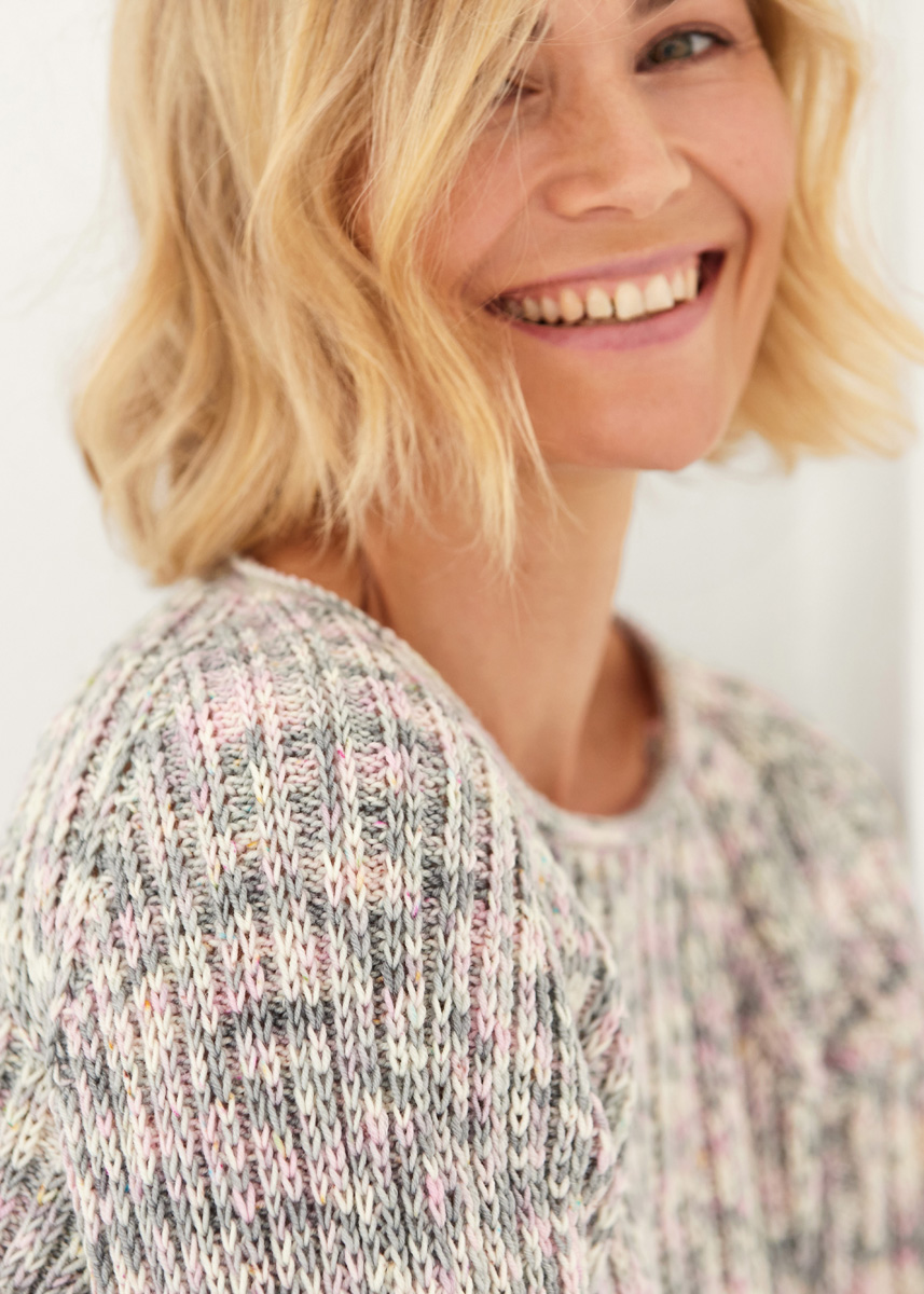 Mit Grau und Offwhite kombiniert, wirkt zartes Rosé chic und cool. Das doppelte Patentmuster und die klassische Silhouette mit Rundhalsausschnitt und Raglanärmeln unterstreichen den zeitlosen Look des Pullovers.