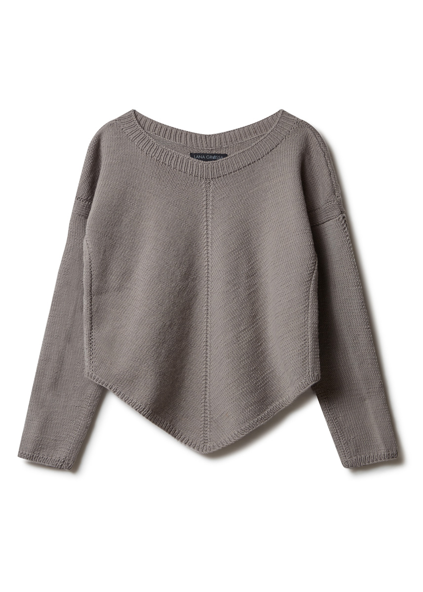 Lana Grossa Cool Wool (100% Schurwolle (Merino extrafein), Lauflänge 160 m/50 g), 450 (500 – 550 – 600) g Grège (Fb. 2027); Stricknadeln Nr. 3,5 und 1 Rundstricknadel Nr. 3,5, 40 cm lang.