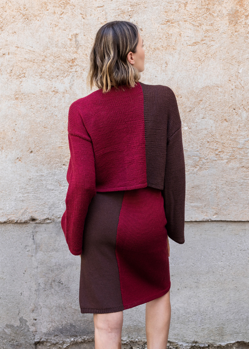 Das Modell hat eine Gesamtlänge von 41 (43 - 45 - 47 - 49 - 51) cm und eine Brustmehrweite von 16 cm bei 80 cm Brustumfang (16 cm bei 88 cm Brustumfang - 16 cm bei 96 cm Brustumfang - 16 cm bei 104 cm Brustumfang - 14 cm bei 116 cm Brustumfang - 12 cm bei 128 cm Brustumfang).