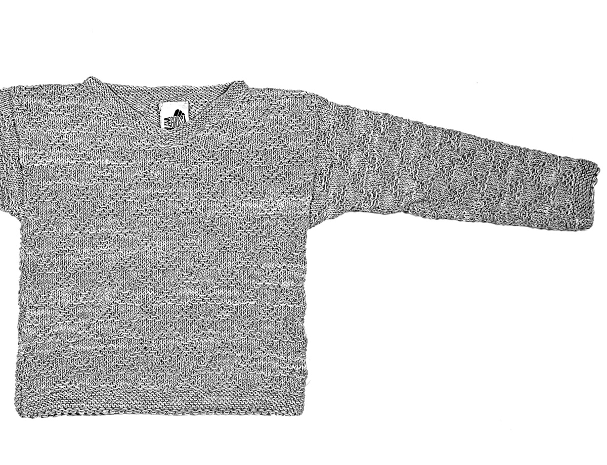 Lana Grossa Cool Wool Semi Solid (100 % Schurwolle, Lauflänge 160 m/50 g), 300 (300 – 350) g Hell-/Mittelgrau/Natur meliert (Fb 6510); Stricknadeln Nr. 4,5 und 1 Rundstricknadel Nr. 4,5, 40 cm lang.