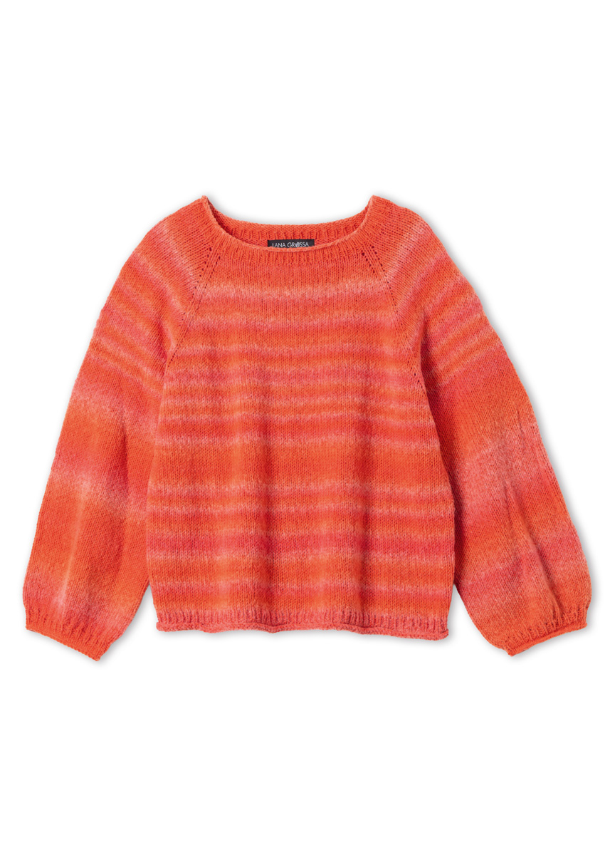 Der Pullover wird von oben nach unten in einem Stück gestrickt.