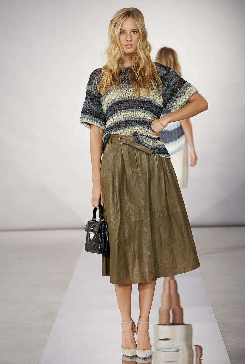 Lana Grossa Di Moda (82% Viskose, 18% Polyester, Lauflänge 100 m/50 g), 400 (450 – 500) g Goldgrau/Anthrazit/Schwarzblau (Fb 11); 1 Rundstricknadel Nr. 8, 60 cm lang.