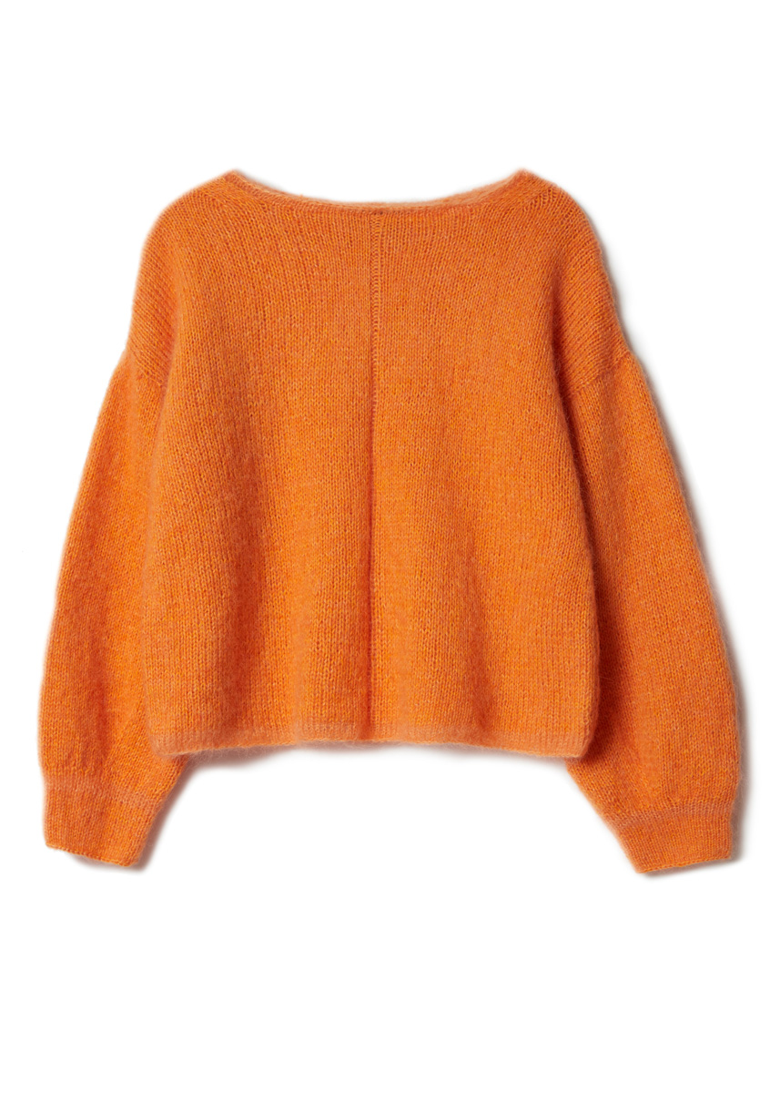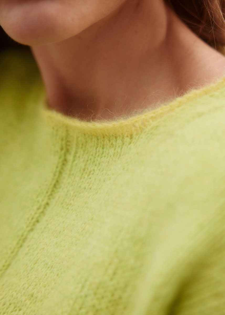 Der Pullover wird mit doppeltem Faden gestrickt.