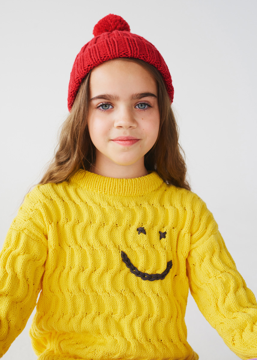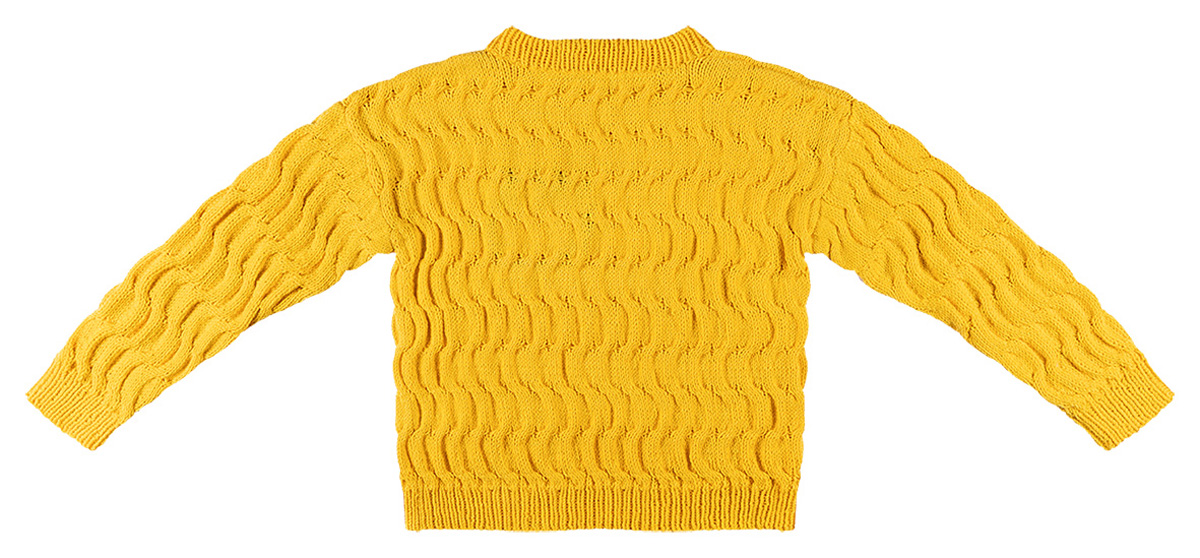 Lana Grossa Elastico (96% Baumwolle, 4% Polyester (Elité), Lauflänge 160 m/50 g), 350 (350 – 400) g Sonnengelb (Fb 107) und 50 g Graphit (Fb 160) oder ein Rest Dunkelgrau; Stricknadeln Nr. 3,5 und 4, 1 Rundstricknadel Nr. 4, 40 cm lang, 1 Zopfnadel und 1 Wollsticknadel.