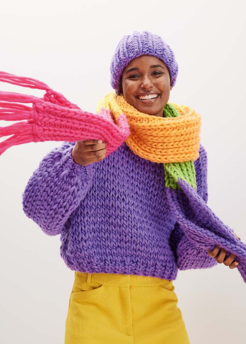 Einfarbig verstrickt, kommt der leicht changierende Effekt des fingerdicken Dochtgarns besonders gut zur Geltung. Achtung, Spoiler-Alarm! Auch für dieses Paar gibt’s ein Happy End, denn beide Teile sind ebenfalls ratzfatz gestrickt.