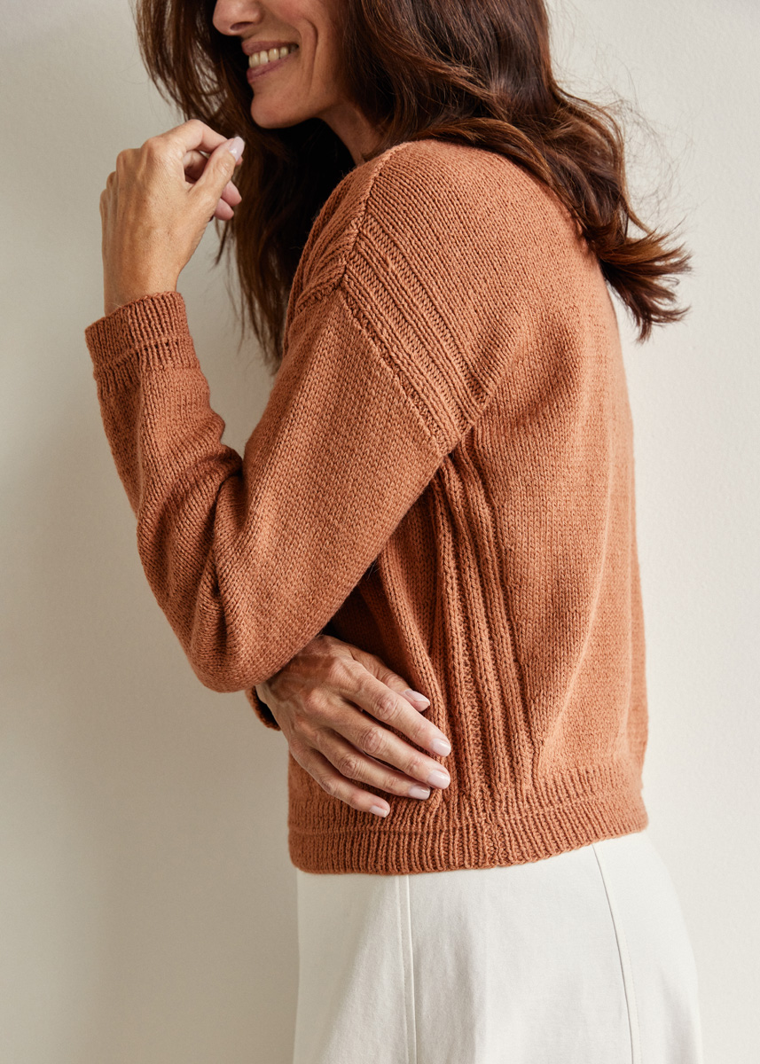 Lana Grossa Landlust Alpaka Merino 160 (50% Alpaka (Baby), 50% Schurwolle (Merino), Lauflänge 160 m/50 g), 400 (450 – 500) g Terrakotta (Fb. 426); Stricknadeln Nr. 3 und 4, sowie 1 Rundstricknadel Nr. 3, 40 cm lang.