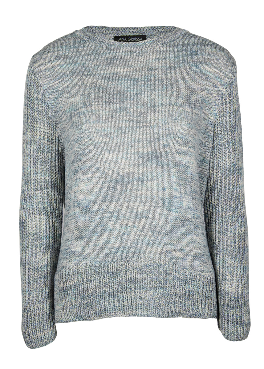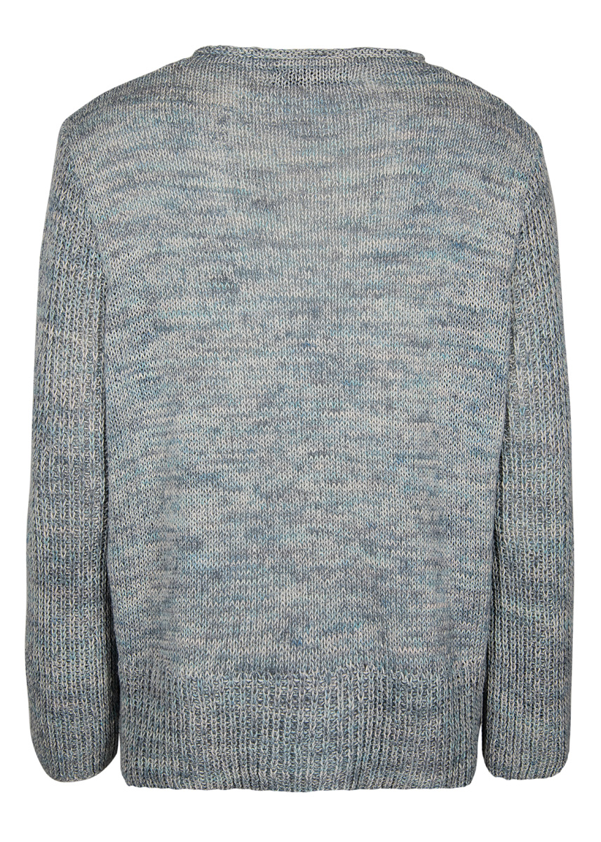 Lana Grossa Landlust Sommerseide (50% Seide, 50% Baumwolle, Lauflänge 170 m/50 g), 400 (450 – 500 – 550) g Graublau Mélange (Fb 106); Stricknadeln Nr. 2,5, 3,5 und 4, 1 Rundstricknadel Nr. 3,5, 40 cm lang.