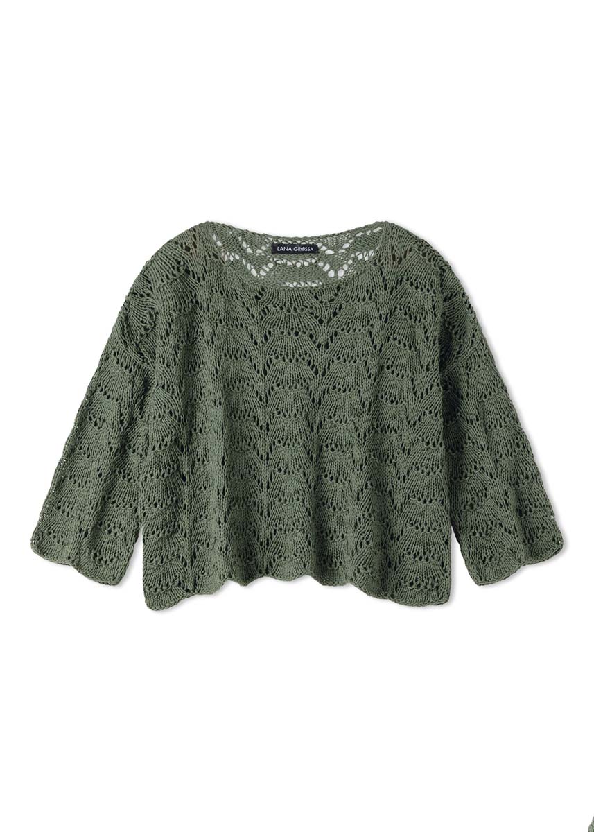 Perfekt zum linken Top passt der sommerliche Pullover im Ajourmuster.