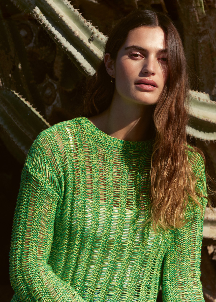 Bei diesem 2-fädig gestrickten Prachtstück sorgen zwei Garne für einen sanft changierenden Farbeffekt und einen wunderschön subtilen Glanz. Auch für Plus Size Größen.