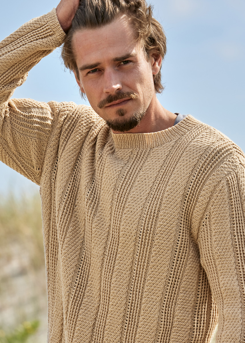 Lana Grossa Merino Superiore (100% Schurwolle (Merino extrafine), Lauflänge 180 m/50 g), 600 (650 – 700) g Beige (Fb 3); Stricknadeln Nr. 3 und 3,5, sowie 1 Rundstricknadel Nr. 3, 40 cm lang.