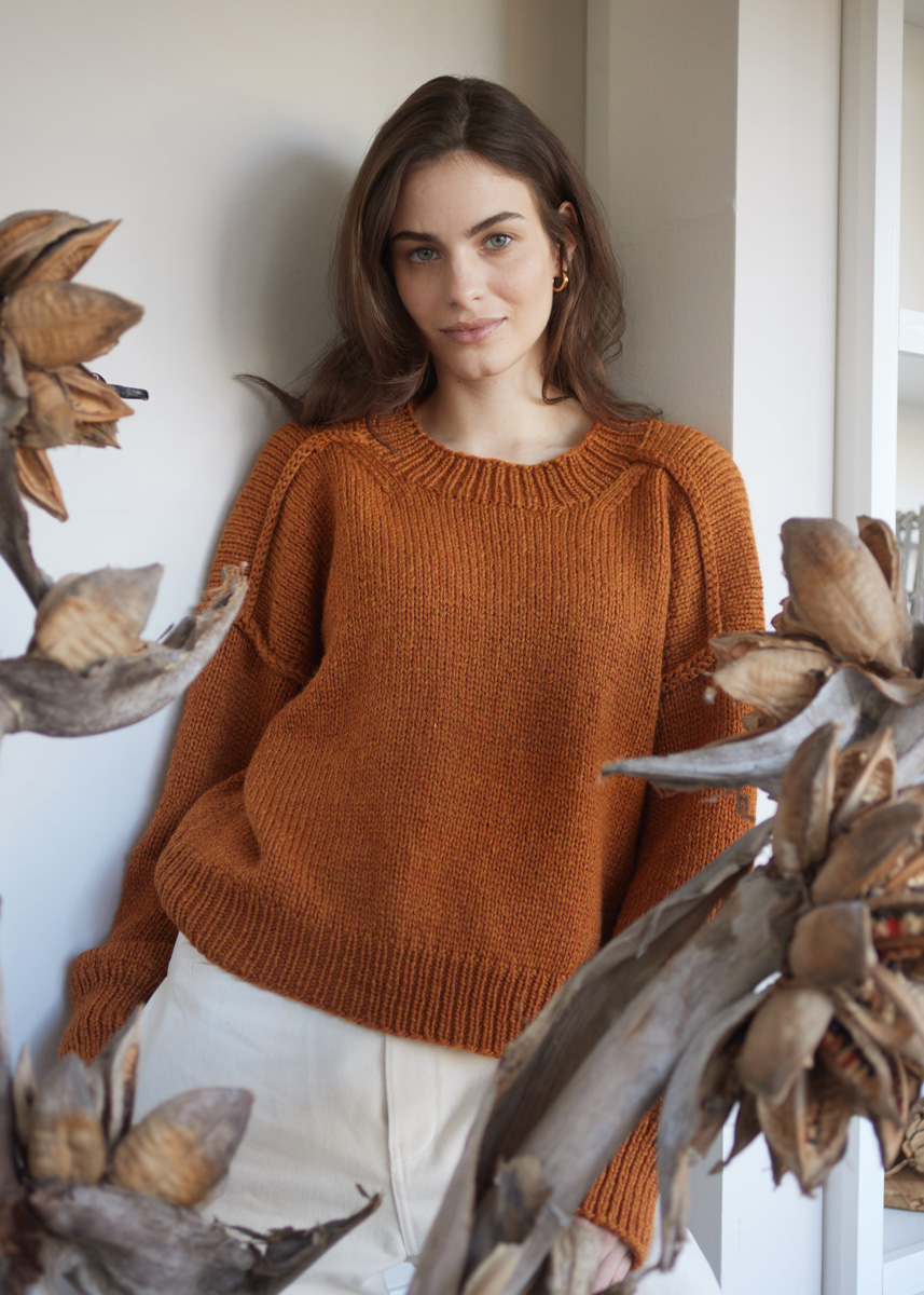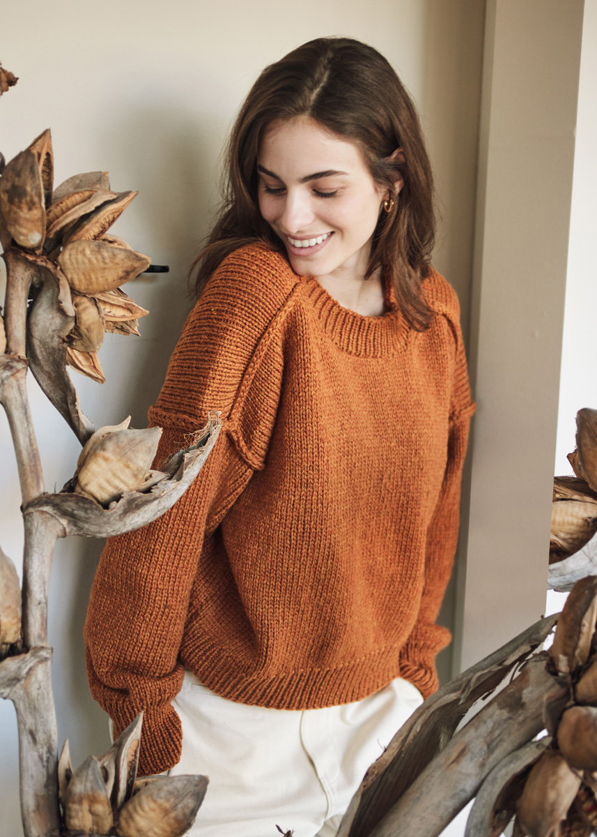 Lana Grossa-Qualität „Cool Merino Big“ (90 % Schurwolle (Merino), 10 % Polyamid, LL = ca 90 m/50 g): ca 550 (550 - 600 - 600) g Rost (Fb 213); Stricknadeln Nr 5 und 7; 1 kurze Rundstricknadel Nr 5.