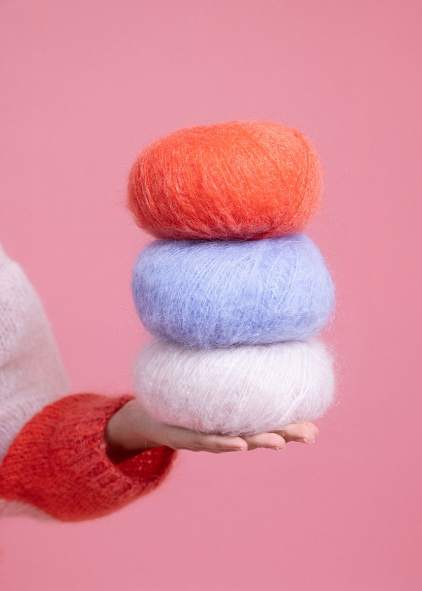 70% Mohair, 20 % Schurwolle Merino, 10% Polyamid