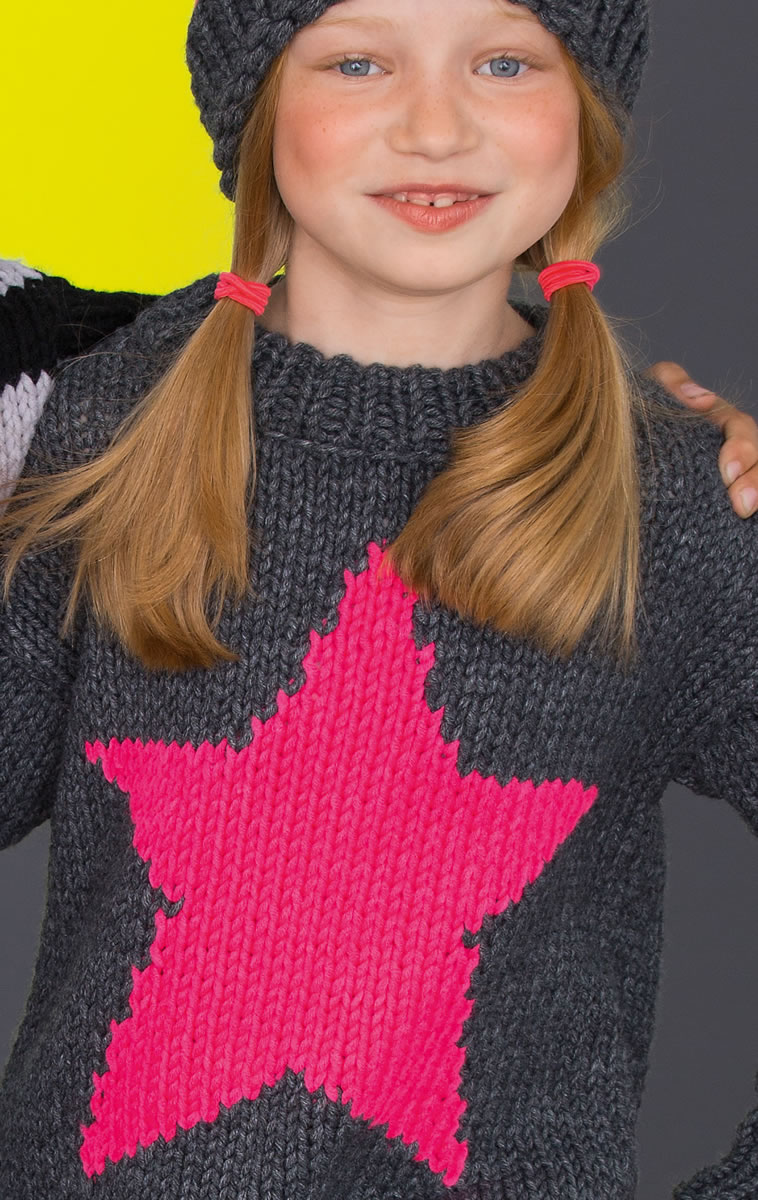 Unter Streetdancern schwer angesagt ist das Sternensymbol. Am liebsten in knalligem Pink – und das passt perfekt auf Pulli und Mütze für kleine Dancing-Queens!