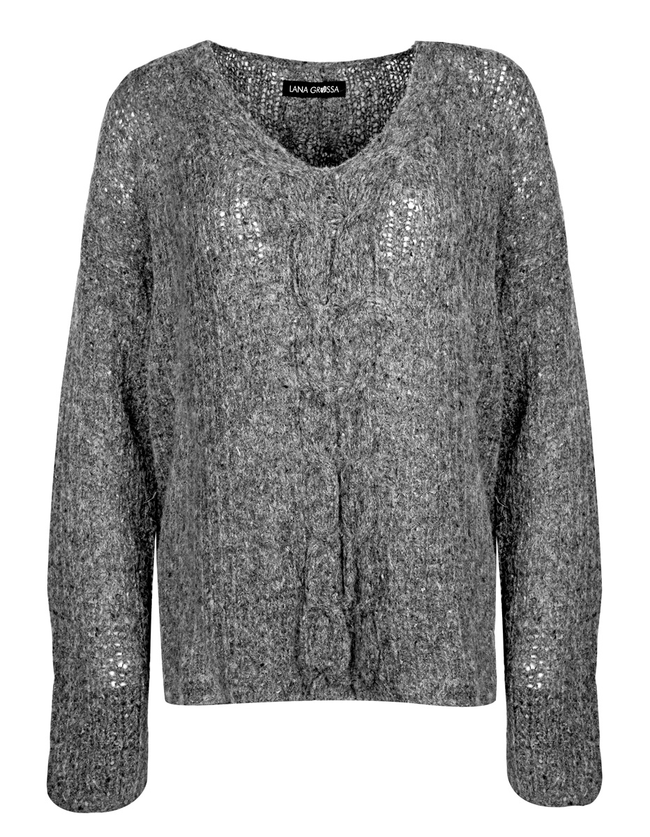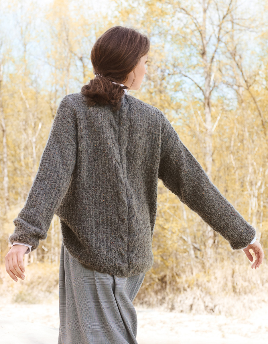 Lana Grossa Peru Tweed (40% Baby Alpaka, 8% Schurwolle Merino extrafein, 32% Viskose, 20% Polyamid, Lauflänge 175 m/50 g), 350 (400 – 450) g Grau (Fb 4); Stricknadeln Nr. 5.