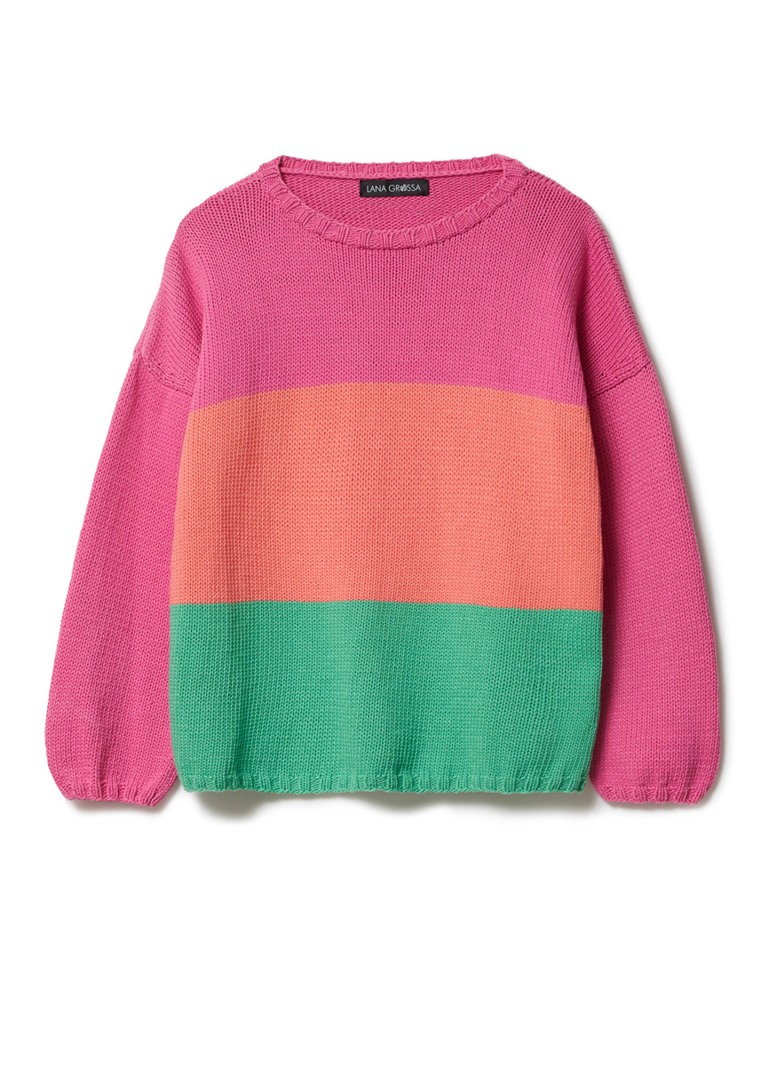 Breite Blockstreifen, ein paar seitliche Zunahmen und ein neues, voluminöses Schlauchgarn: So ausdrucksvoll geht unkompliziert.