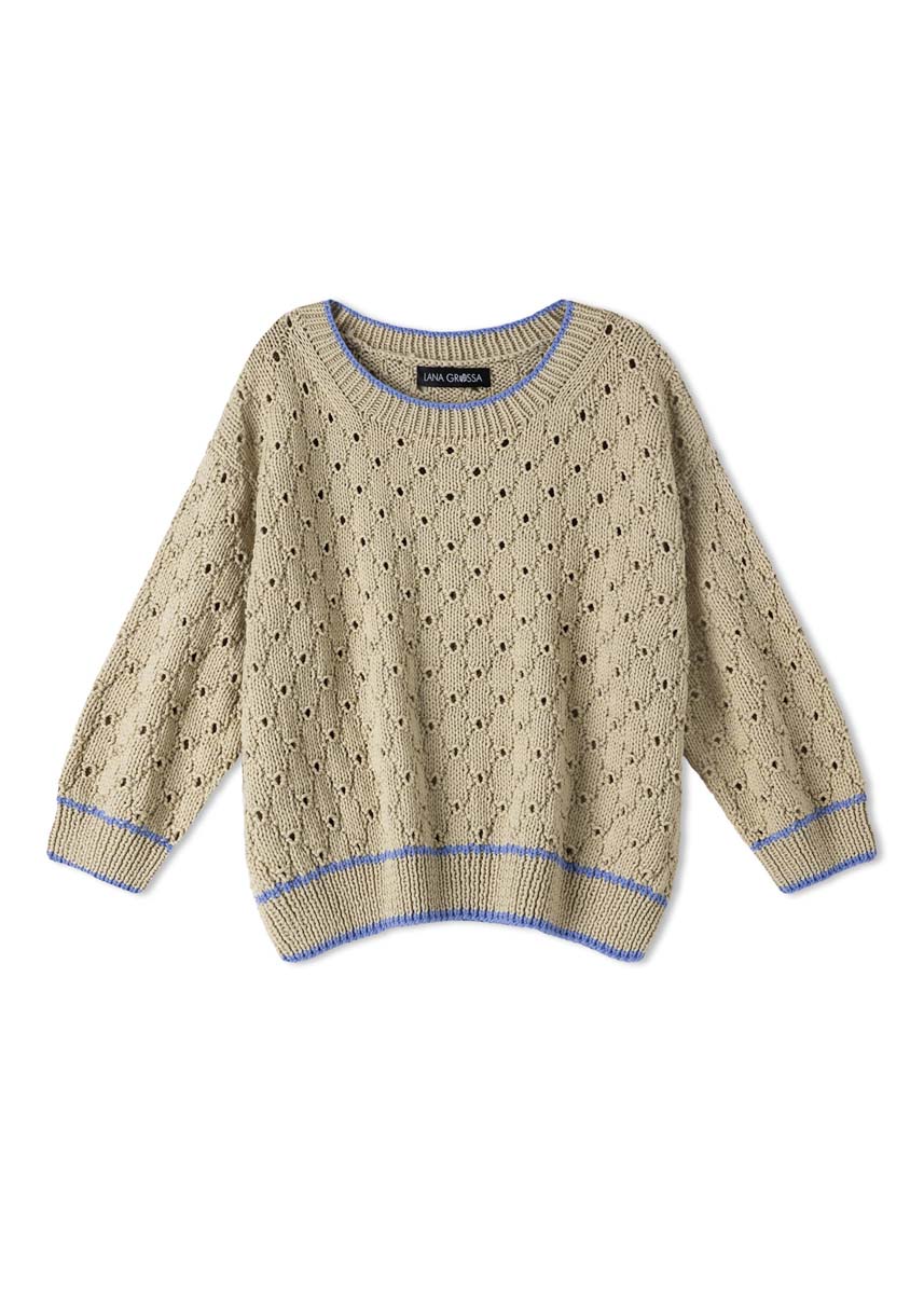 Mädchenhaft verspielter Pullover mit Lochmuster und Dreiviertel-Arm.