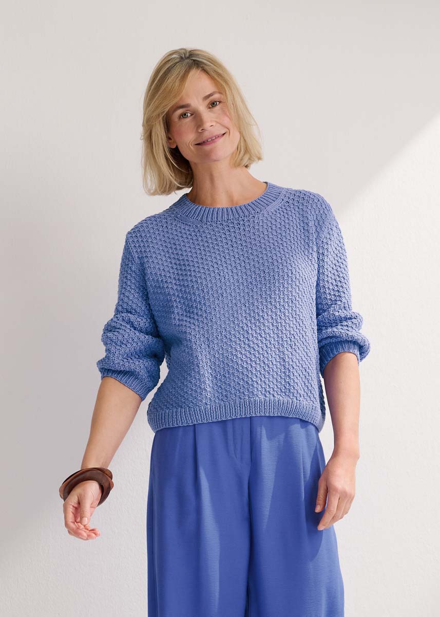 Schlicht und trotzdem spannend – Sweater mit Dreiviertel-Arm und Strukturmuster.