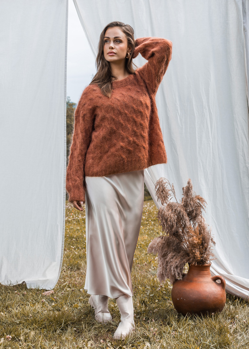88 unterschiedliche Farben stehen bei diesem Leichtgewicht, das stets mit doppeltem Faden gearbeitet wird, zur Auswahl. Das durchgehende, dezente Zopfmuster sorgt trotz der schlichten Form für eine spektakuläre Optik.