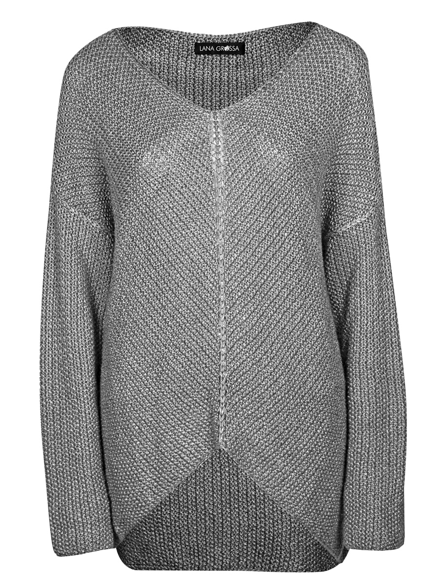 Die interessante Form des Pullis entsteht durch geschickte Zu- und Abnahmen in der vorderen Mitte. Das ist einfacher als es aussieht und hat einen spannenden Effekt.
