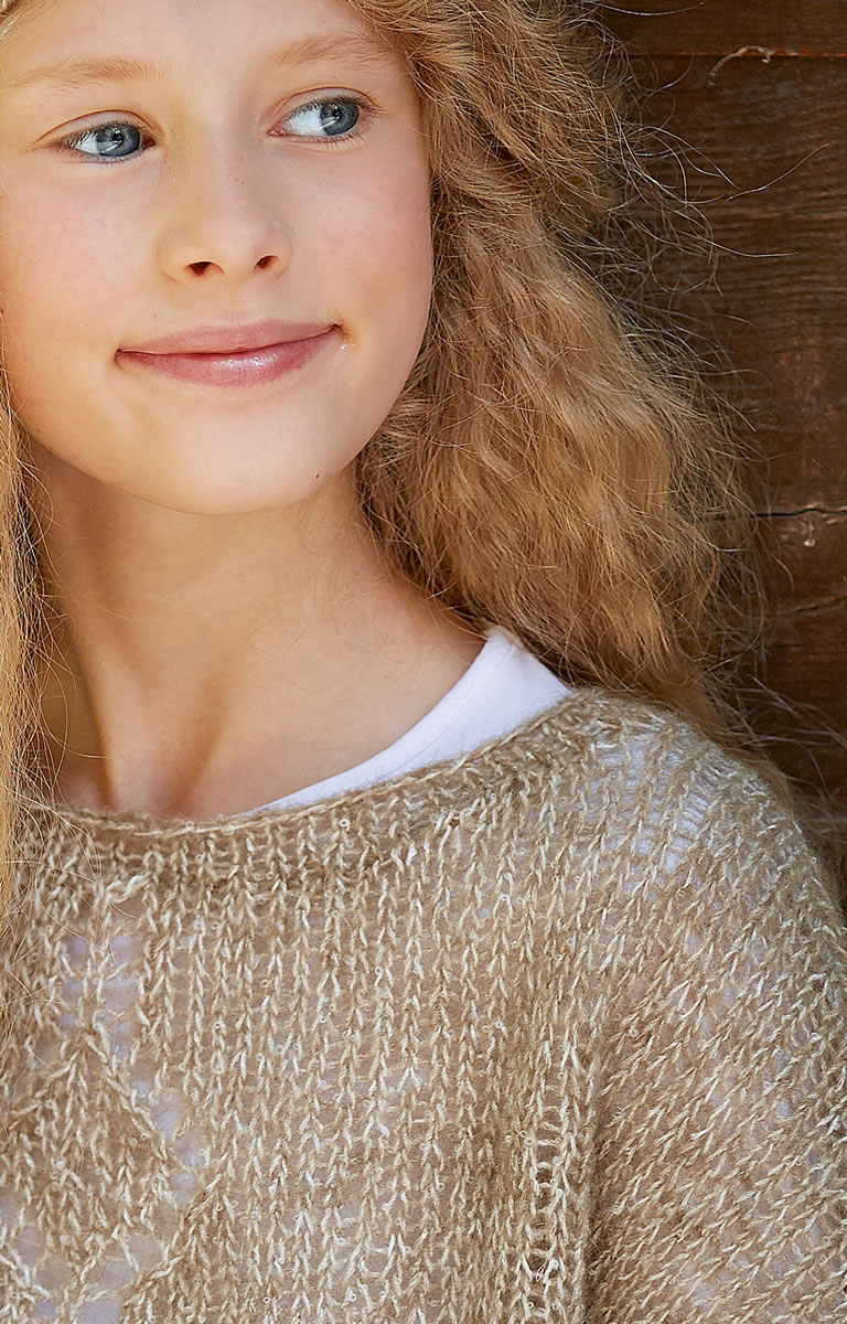 Lana Grossa Qualität „Garzato Nuovo“, (37% Schurwolle Merino , 20% Super Kid Mohair, 33% Polyamid, 10% Polyacryl, LL = 185 m/50 g), ca. 150 (200) g Beige/Rohweiß (Fb 6), Stricknadeln Nr. 6, 1 Spiel Stricknadeln Nr. 6.