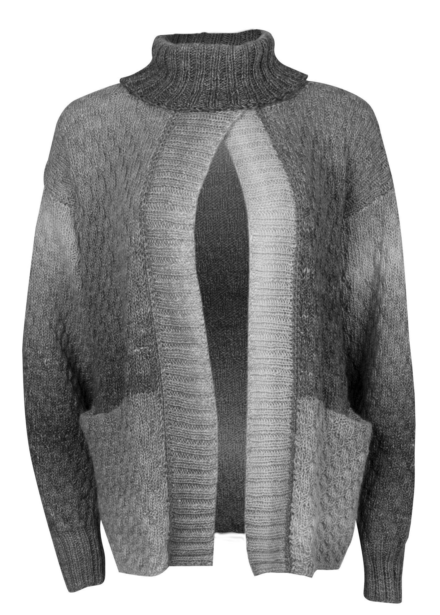 Lana Grossa Gomitolo Versione (60 % Schurwolle, 40 % Polyacryl, Lauflänge 700 m/200 g) 400 (600 – 600) g Altrosa/Senf/Petrol/Grau (Fb 405); Stricknadeln Nr. 3,5 und 4, eine 40 cm lange Rundstricknadel Nr. 3,5; Häkelnadel Nr. 3,5.
