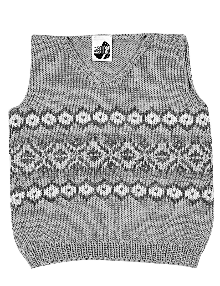 Lana Grossa Cool Wool Big (100 % Schurwolle, Lauflänge 120 m/50 g), 100 (150) g Blaugrau (Fb 959), 50 g Silbergrau (Fb 951), 50 g Dunkelgrau meliert (Fb 617), 50 g Rosenholz (Fb 953), 50 g Taupe (Fb 686); je 1 Rundstricknadel Nr. 4 und 4,5, 60 cm lang und Stricknadeln Nr. 4,5.