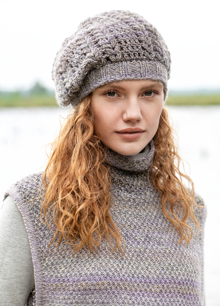 Lana Grossa Gomitolo Scandic (50% Schurwolle Merino, 50% Acryl, Lauflänge 700 m/200 g), 200 (400 – 400) g Grau/Oliv meliert (Fb 502); Stricknadeln Nr. 4,5 und 5, 1 Rundstricknadel Nr. 5, 40 cm lang, 1 Rundstricknadel Nr. 4,5, 100 cm lang.