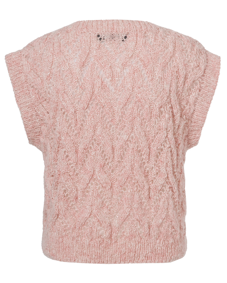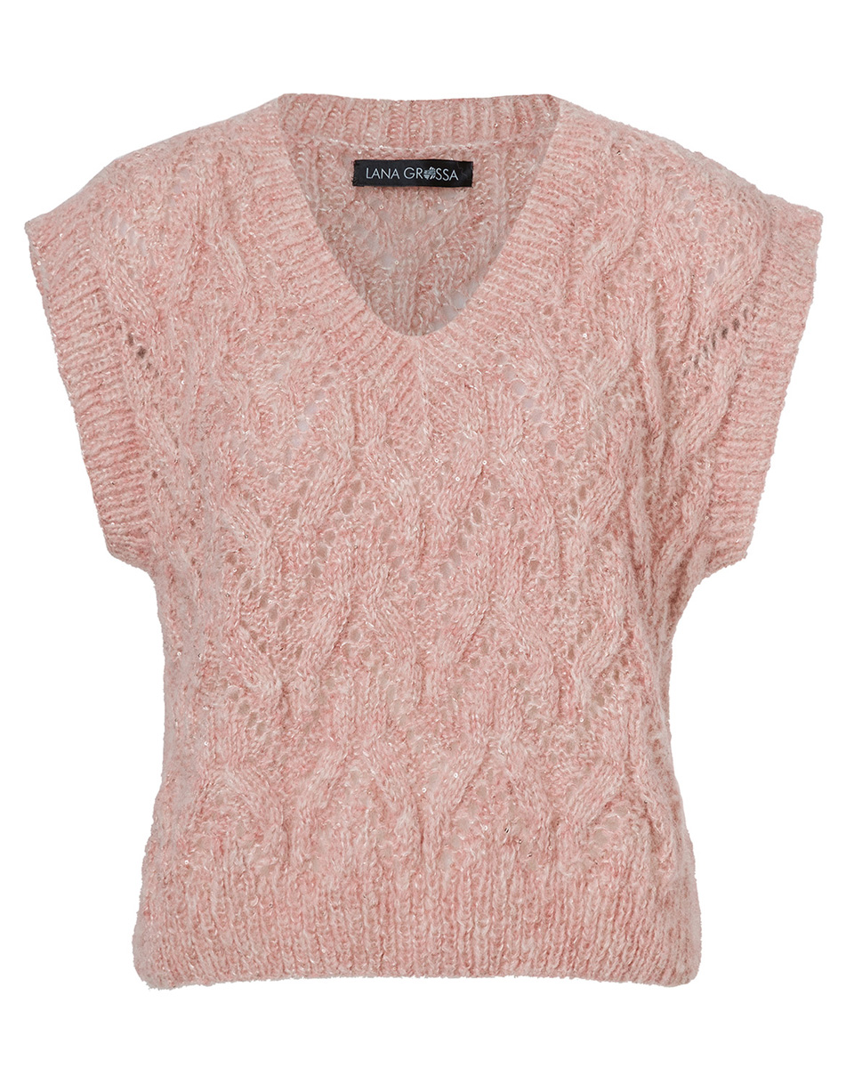 Zopf-Pullunder gehören zur britischen Upperclass, wie Scones zum High Tea. Dieser brilliert mit glitzerndem Beilaufgarn und einer neuen, kastigen Form.