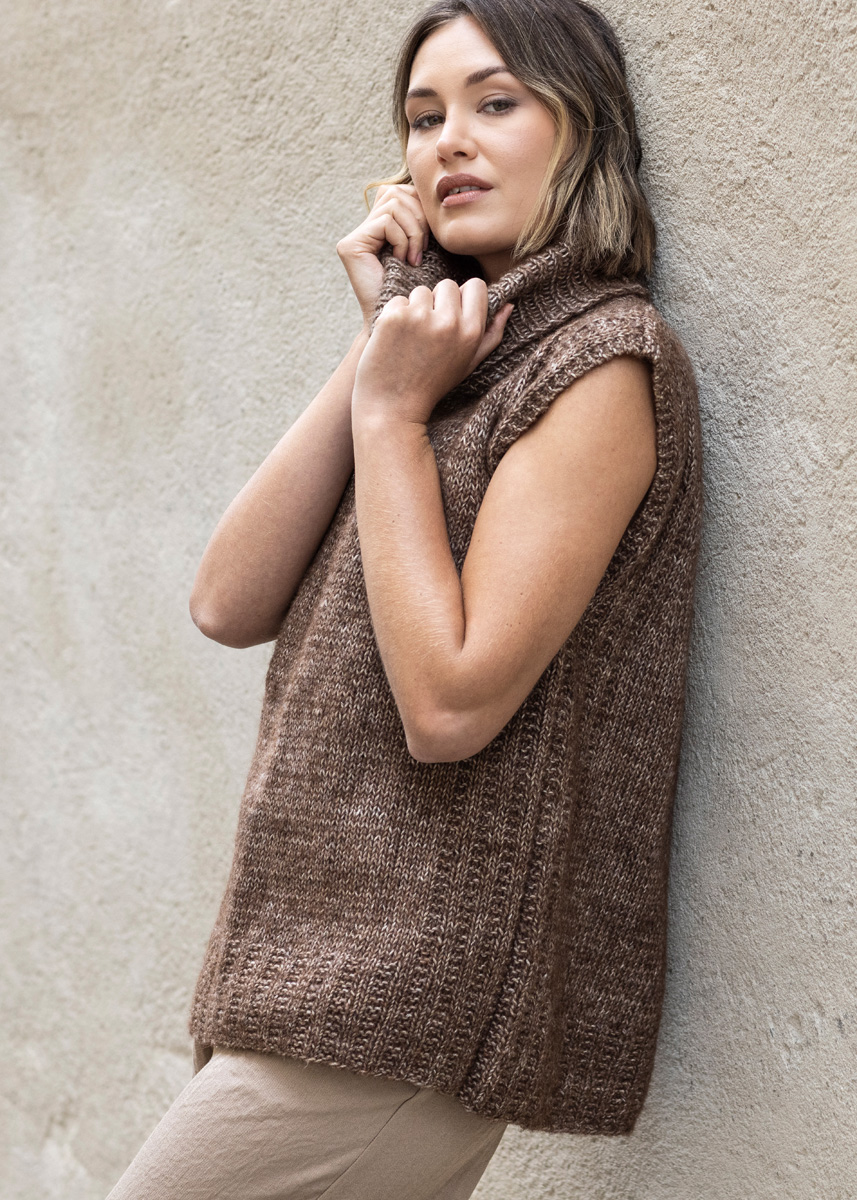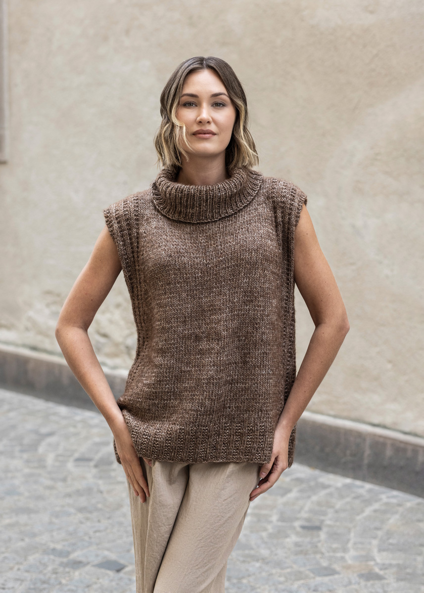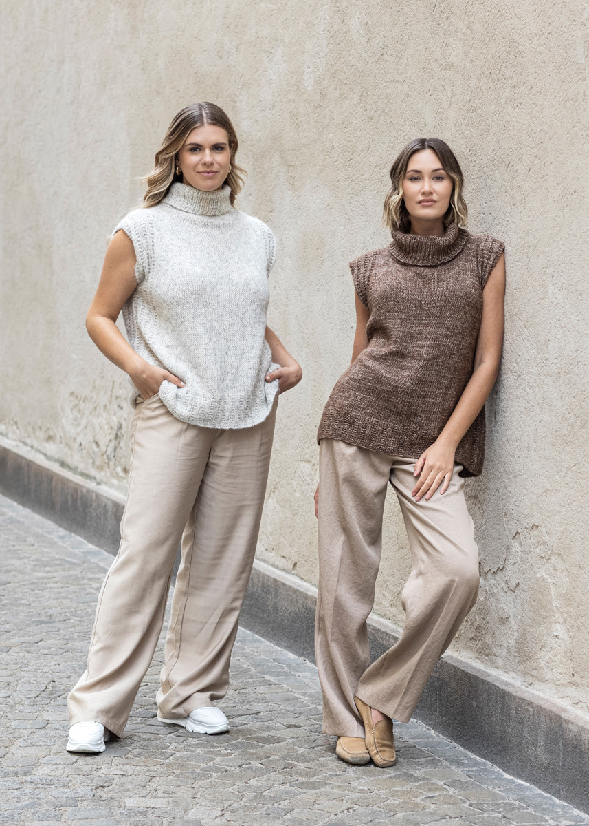 • 300 (300 - 350 - 350 - 350 - 400) g Dunkelbraun meliert (Fb 8) oder Rohweiß/Zartgrau (Fb 2)