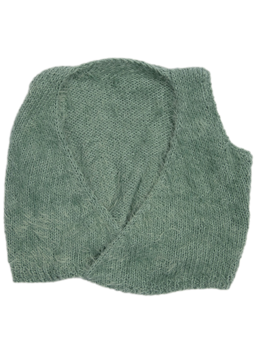 Lana Grossa Per Fortuna (74 % Baumwolle, 26 % Polyamid, Lauflänge 190 m/50 g) 50 (100/100/100) g Resedagrün (Fb 14); Stricknadeln Nr. 4, Häkelnadel Nr. 3,5.