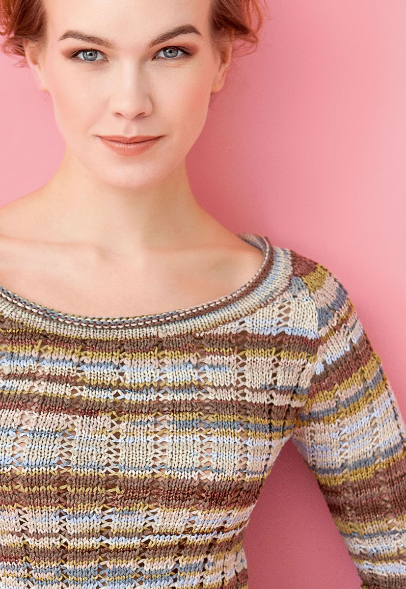 Lana Grossa-Qualität „Allegro“ (58 % Viskose, 42 % Baumwolle, LL = ca. 115 m/50 g) 350 (400) 450 g Hellblau/Pastellgrün/Graubraun/Oliv (Fb 19). Strick-Nd Nr 4, 1 kurze Rundstrick-Nd Nr 4.