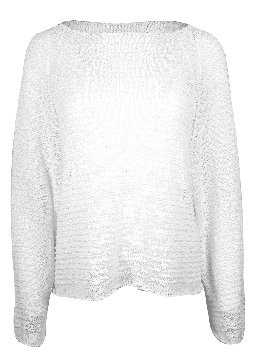 Lana Grossa-Qualität „Capri” (55 % Baumwolle, 15 % Seide, 30 % Polyamid, LL = ca. 150 m/50 g): ca. 450 (500) g Weiß (Fb. 1); Stricknadeln Nr. 3,5 und 4, je 1 Rundstricknadel Nr. 4, 60, 80 und 100 cm lang, 1 Rundstricknadel Nr. 3,5, 60 cm lang.