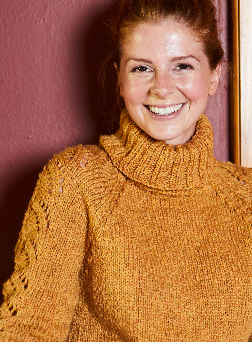 Lana Grossa-Qualität „Landlust Merino 120“ [100% Schurwolle (Merino superwash), LL ca. 120 m/50 g], ca. 450 (500 - 500 - 550) g Honiggelb (Fb 113); Stricknadeln und eine kurze Rundstricknadel Nr. 7