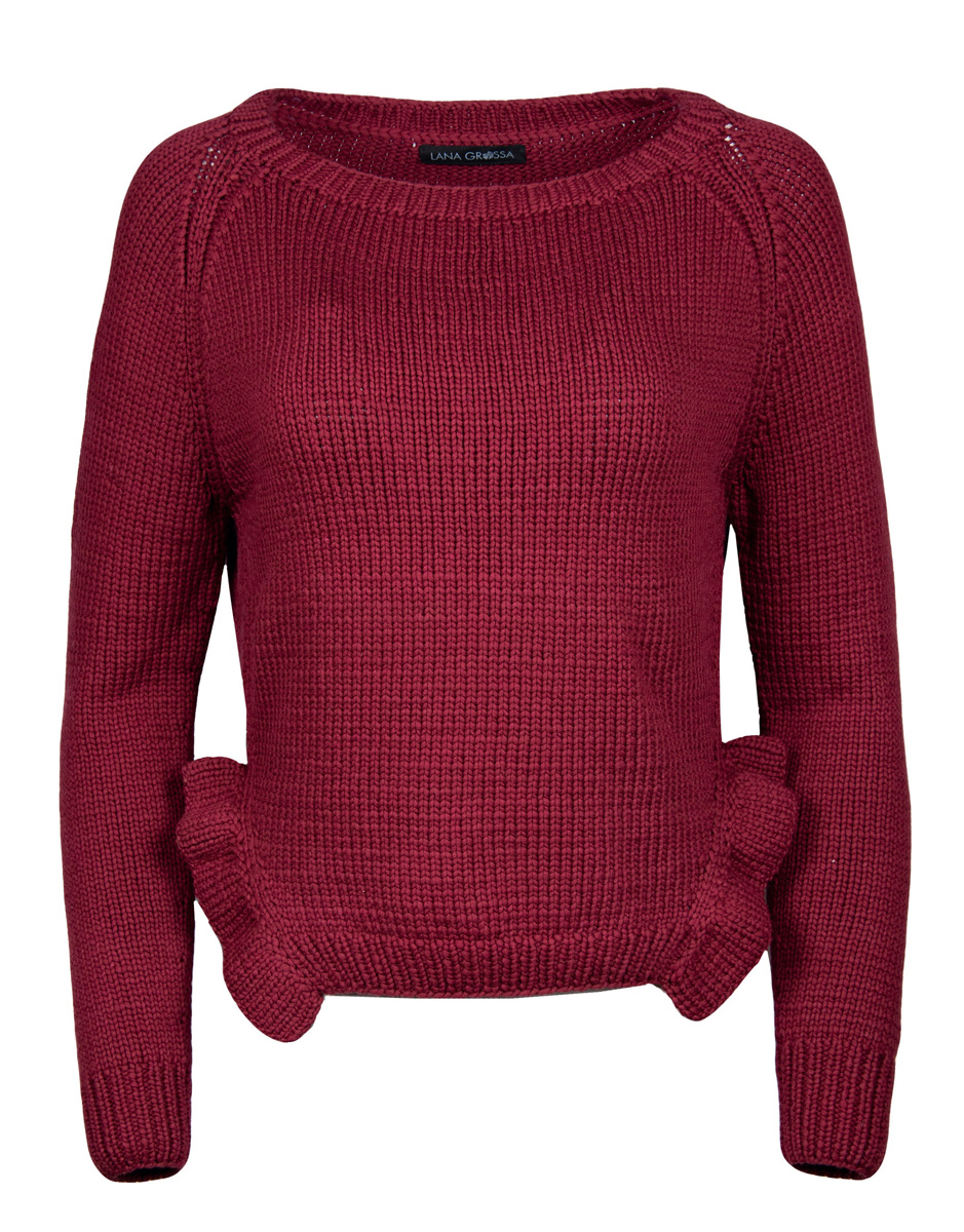 Einfach aber effektvoll: Angestrickte Rüschen bescheren dem sportlichen Raglan-Pulli feminine Finesse.